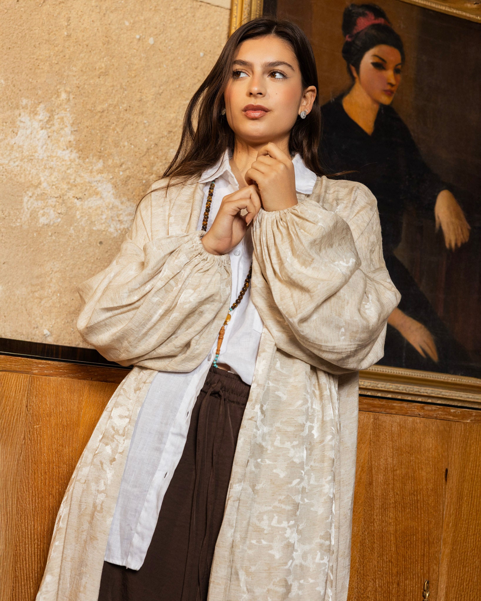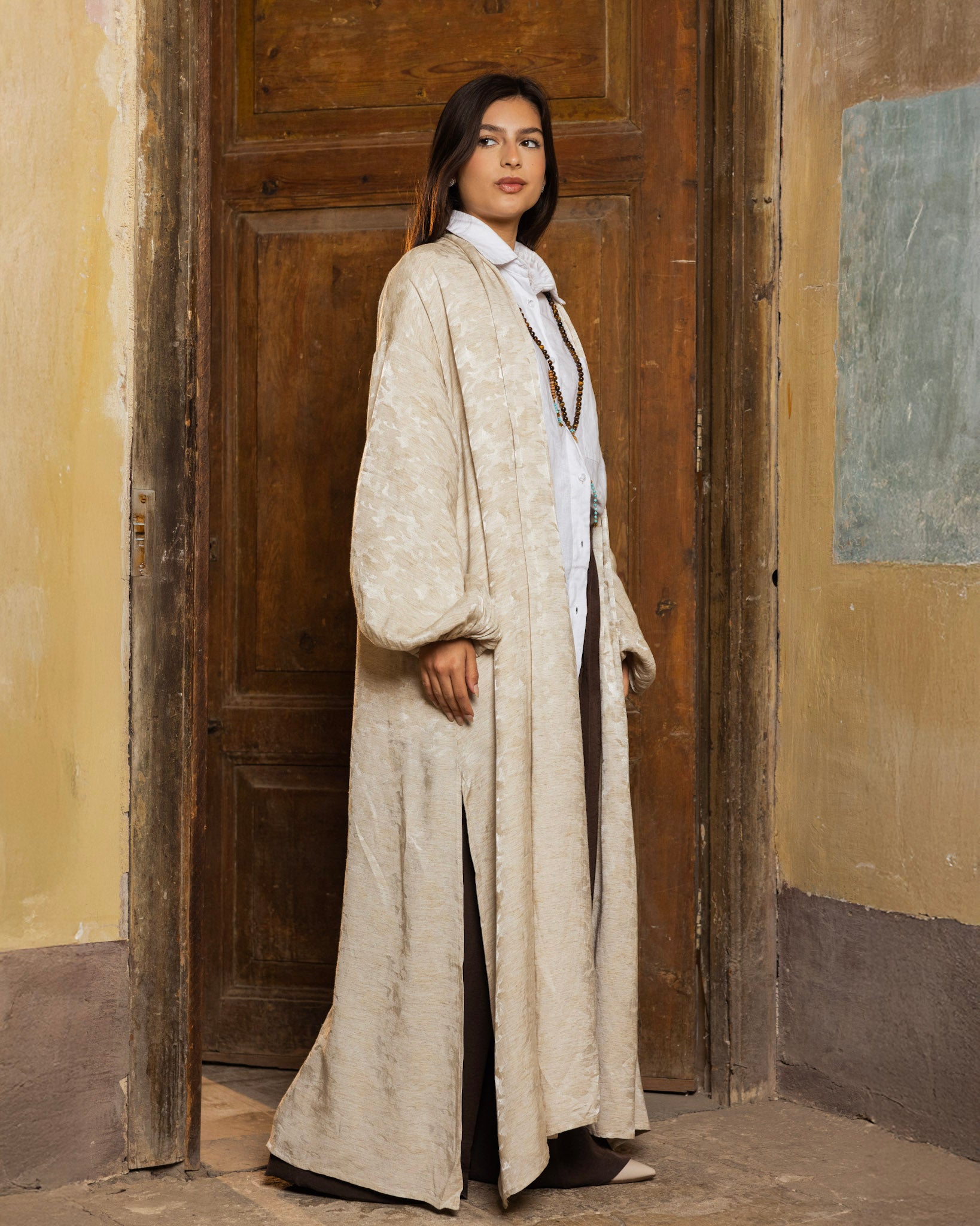 Wrap yourself in serenity with our Kimono, crafted from luxurious fabric that drapes elegantly across the body and makes you catch the light.